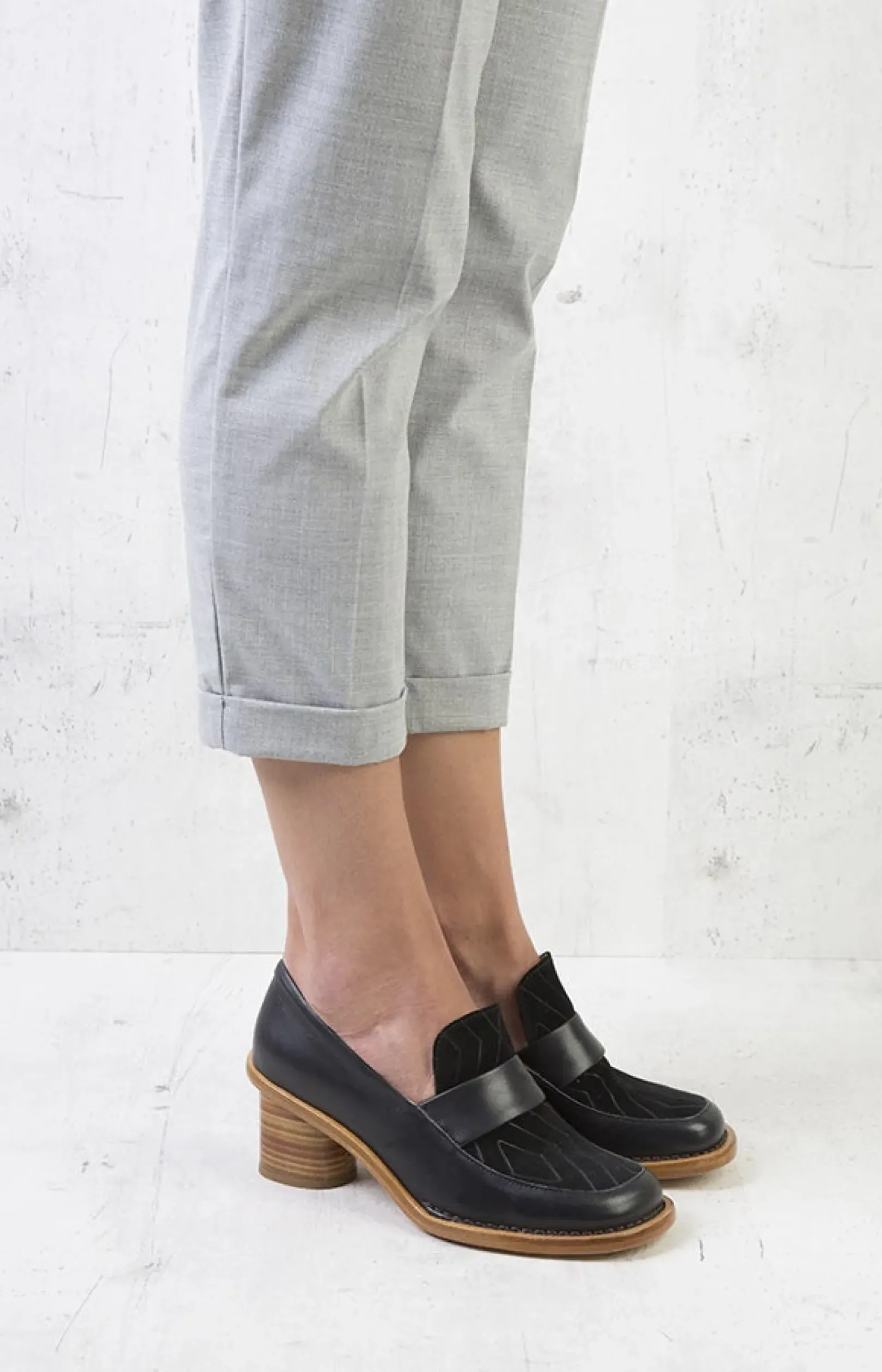 Ligne De Chaussures Elegantes Et Sobres. Forme Carree, Talon Rond Et Des Fermetures Dorees. Designs Minimalistes Qui Apportent Une Valeur Ajoutee Dans Votre « Outfit ».