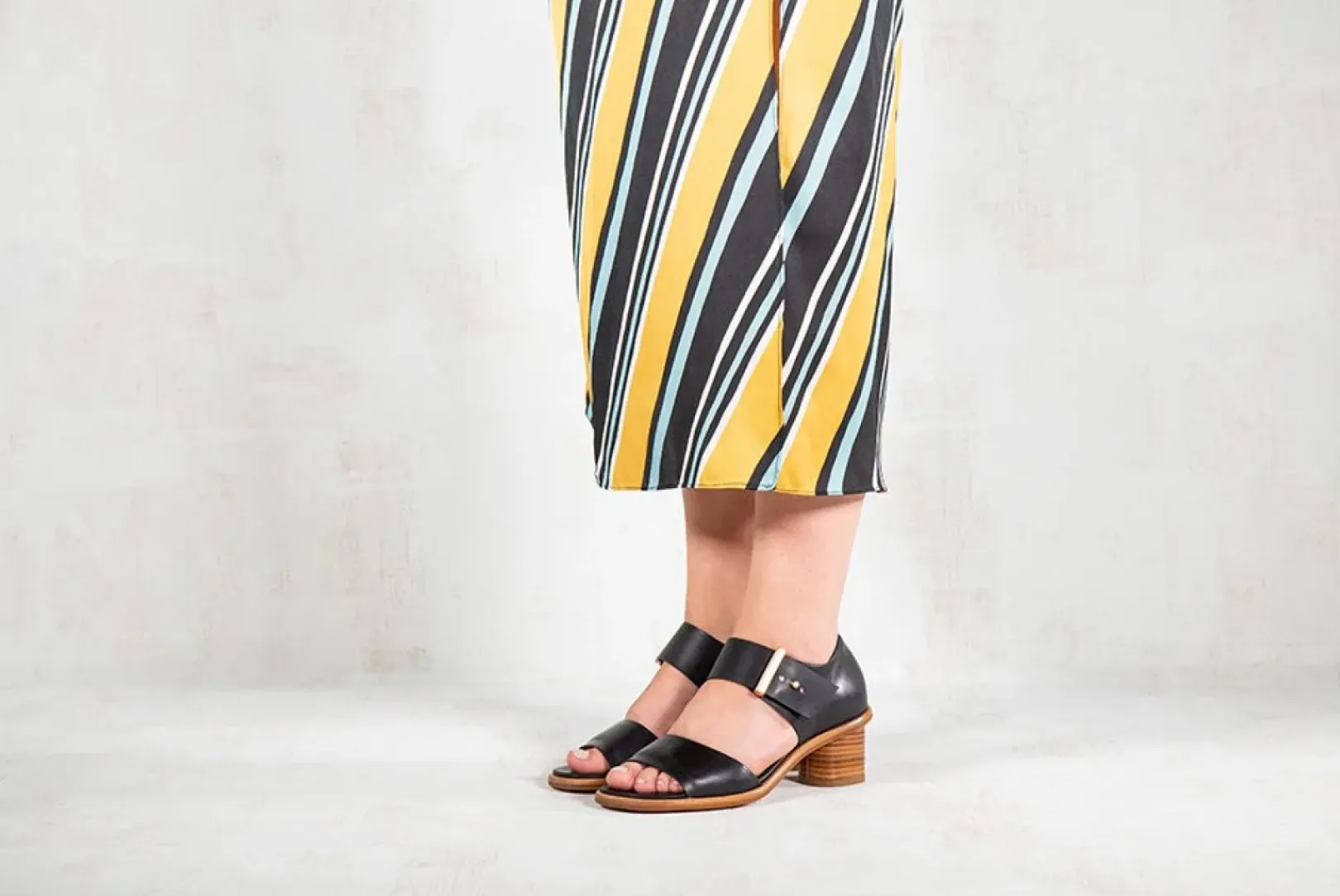 Ligne Des Sandales Elegantes Et Sobres. Son Caractere Est Marque Par Sa Forme Carree Et Talon Rond. Designs Minimalistes Avec Des Boucles D’Or Rose Apportent Une Valeur Ajoutee A Votre « Outfit ».